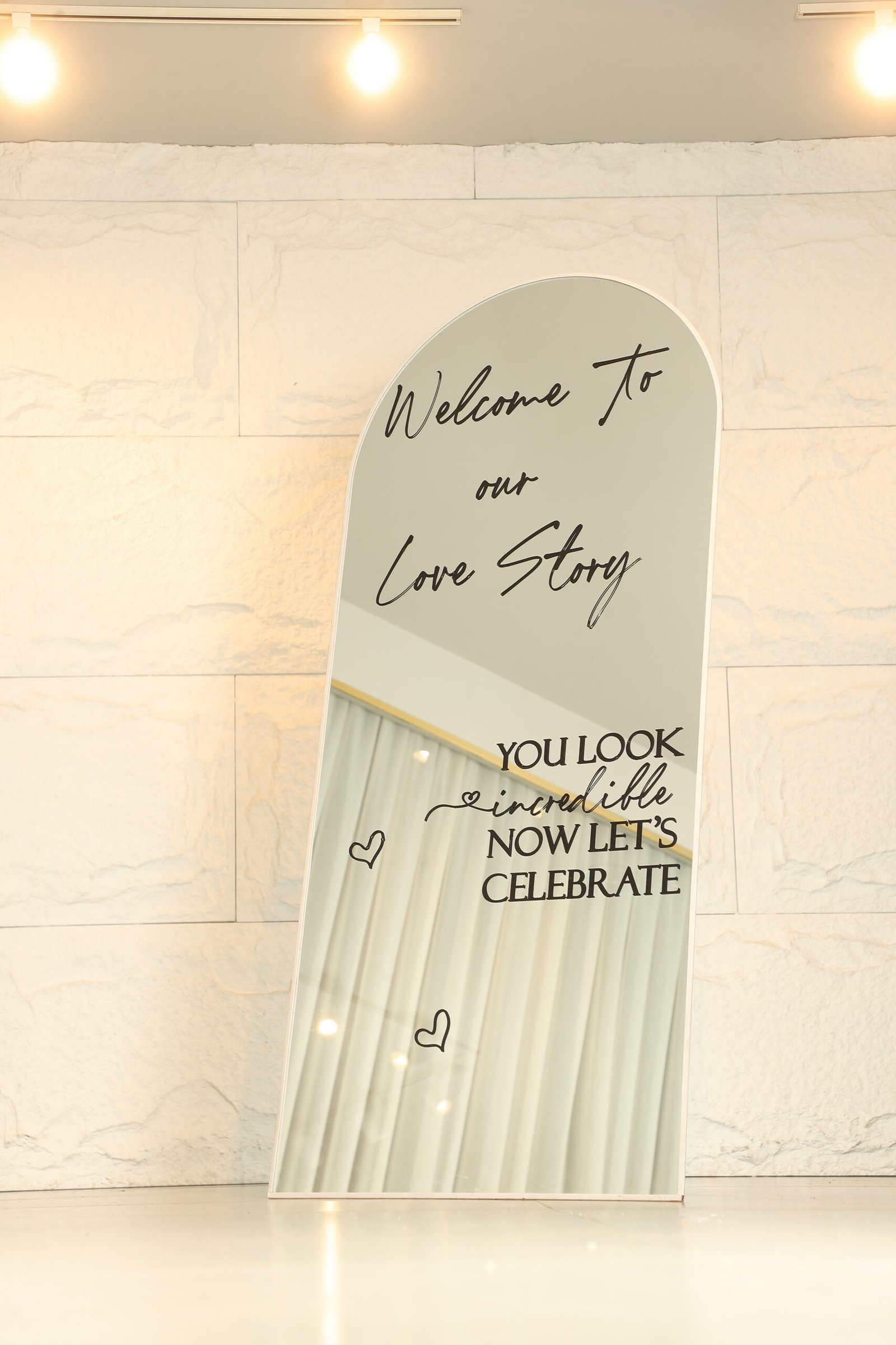 Add a touch of timeless sophistication and create an illusion of expanded space with our exquisite mirror collection. Perfect for elegant welcome signs or sophisticated seating charts.
